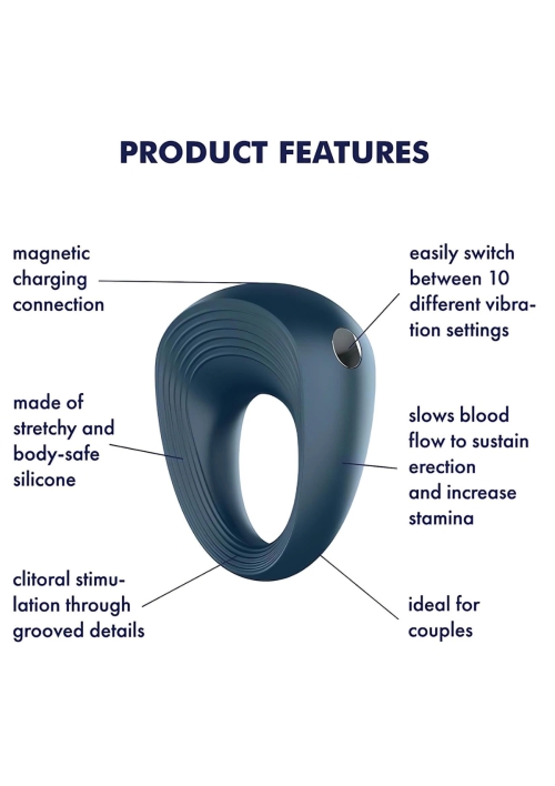 Erőteljes vibrációval kényeztető, bőrbarát szilikonból készült prémium péniszgyűrű, amely felfelé fordítva a csiklót, lefelé fordítva a gátat stimulálja, USB-ről tölthető kivitelben!